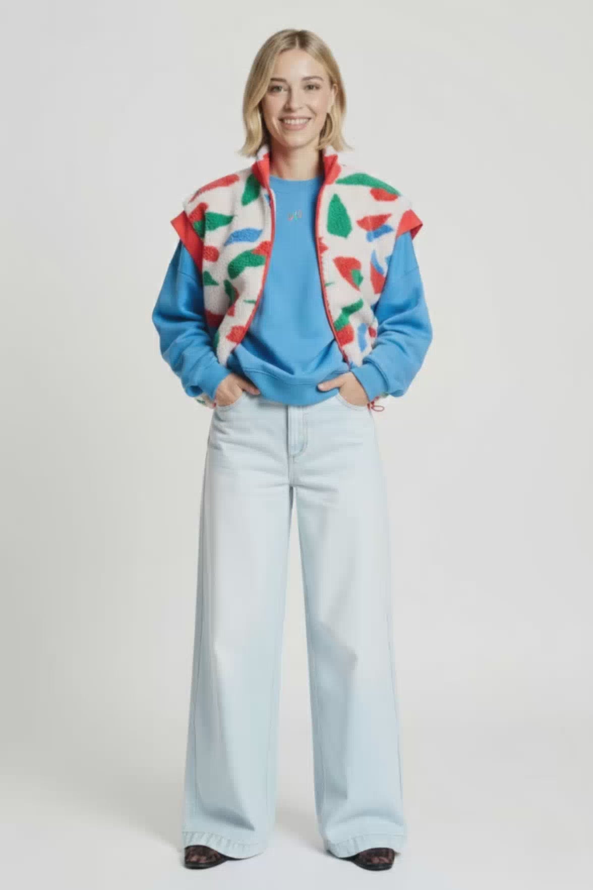 • Gekleurde teddy gilet