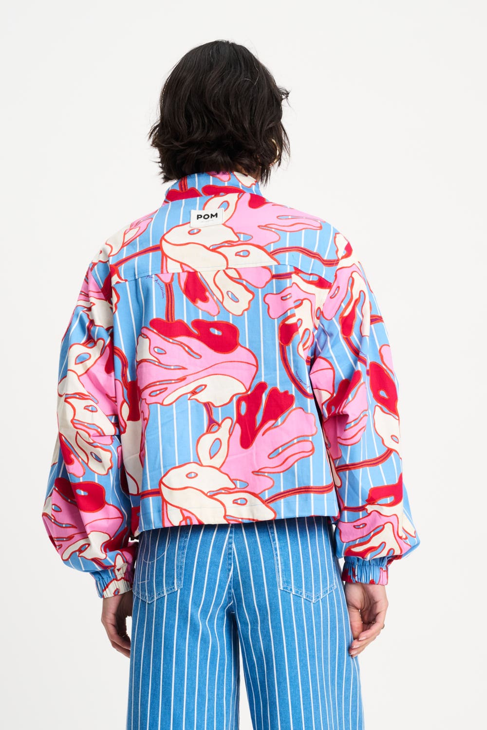 • Roze jasje met blauw-witte strepen en bloemenprint