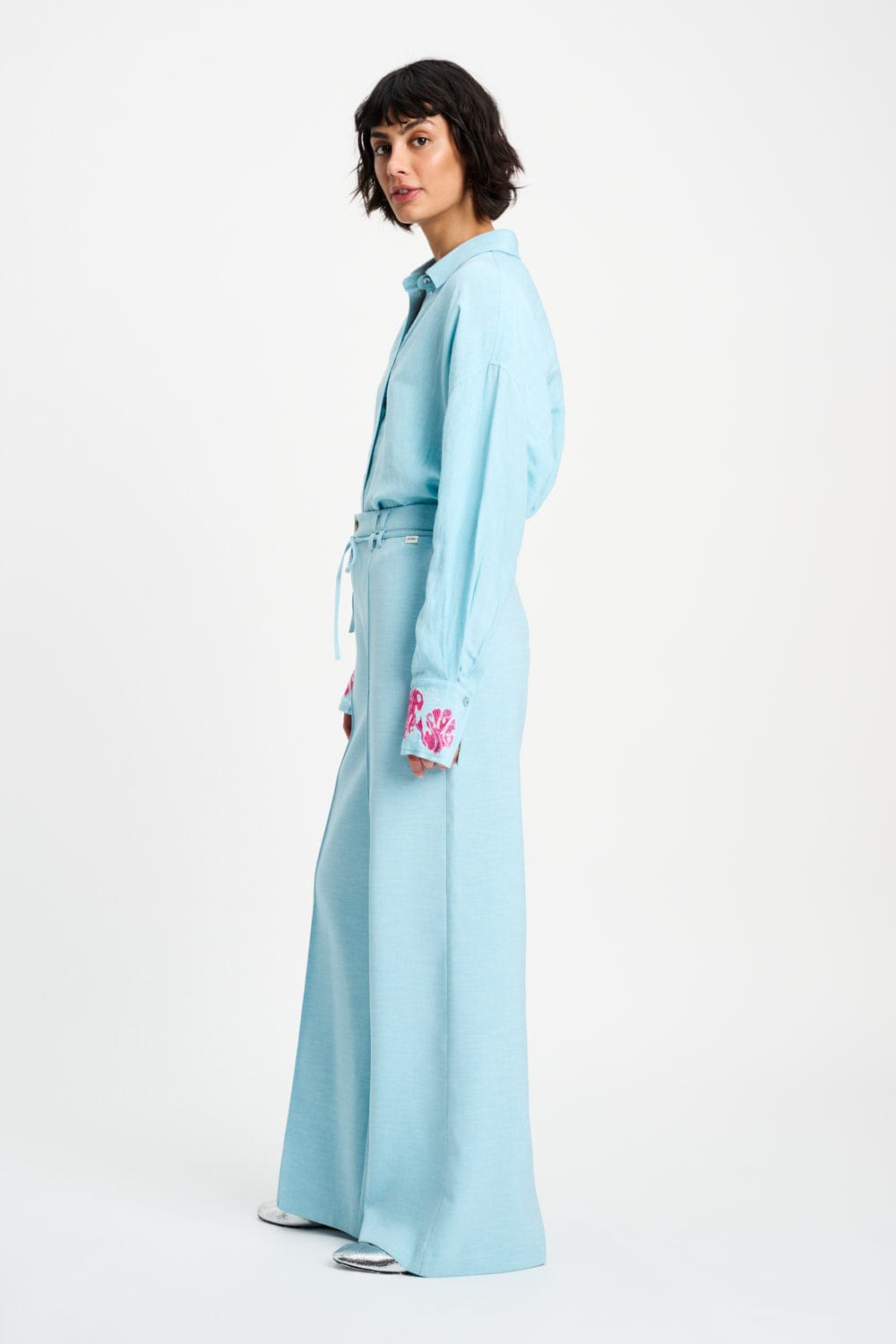 Pasvorm: De broek heeft een high waist en een wide leg pasvorm. Het model op de foto is 176 cm lang en draagt maat 36.
