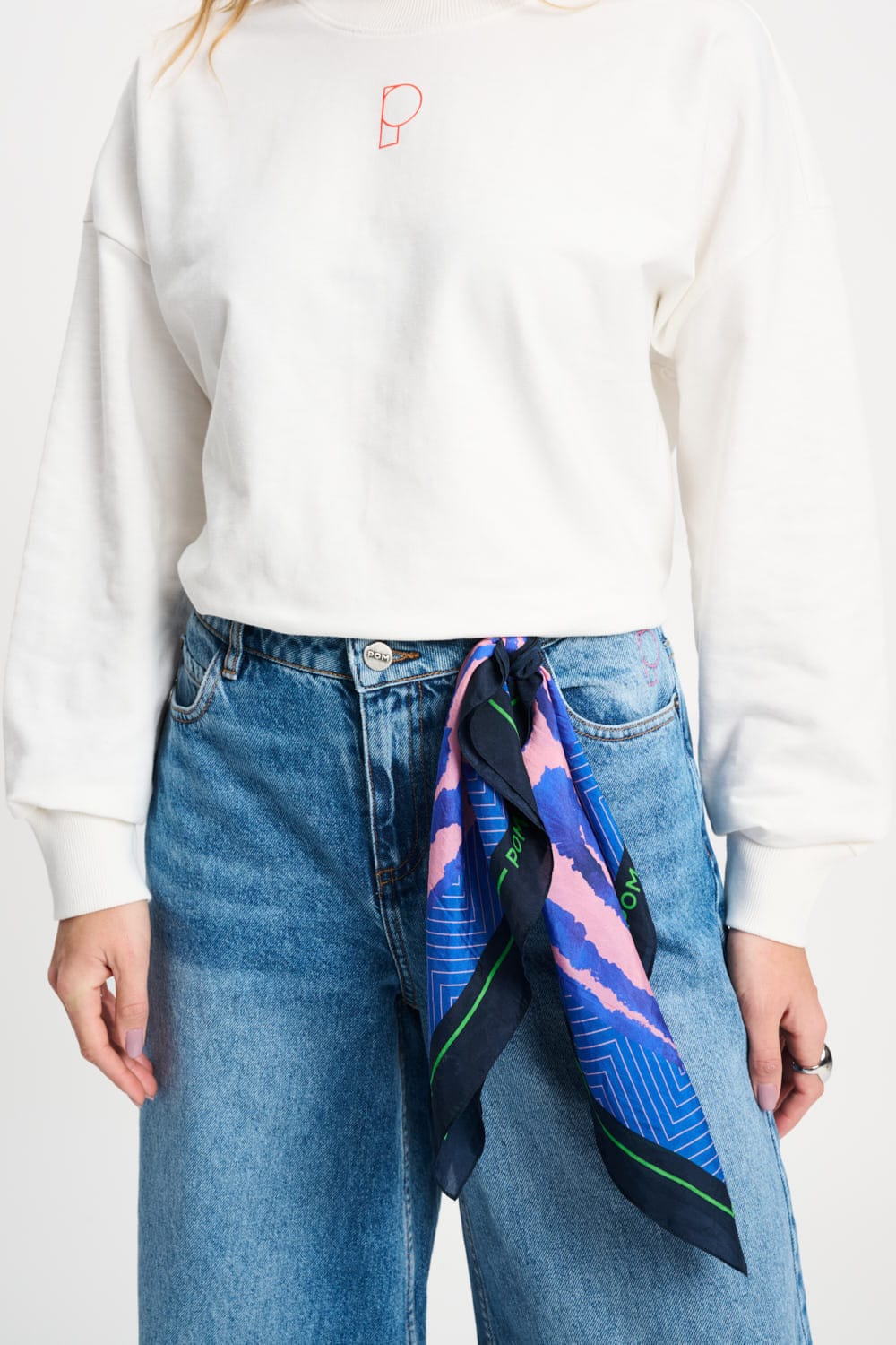 • Sjaal in roze met blauwe golfprint