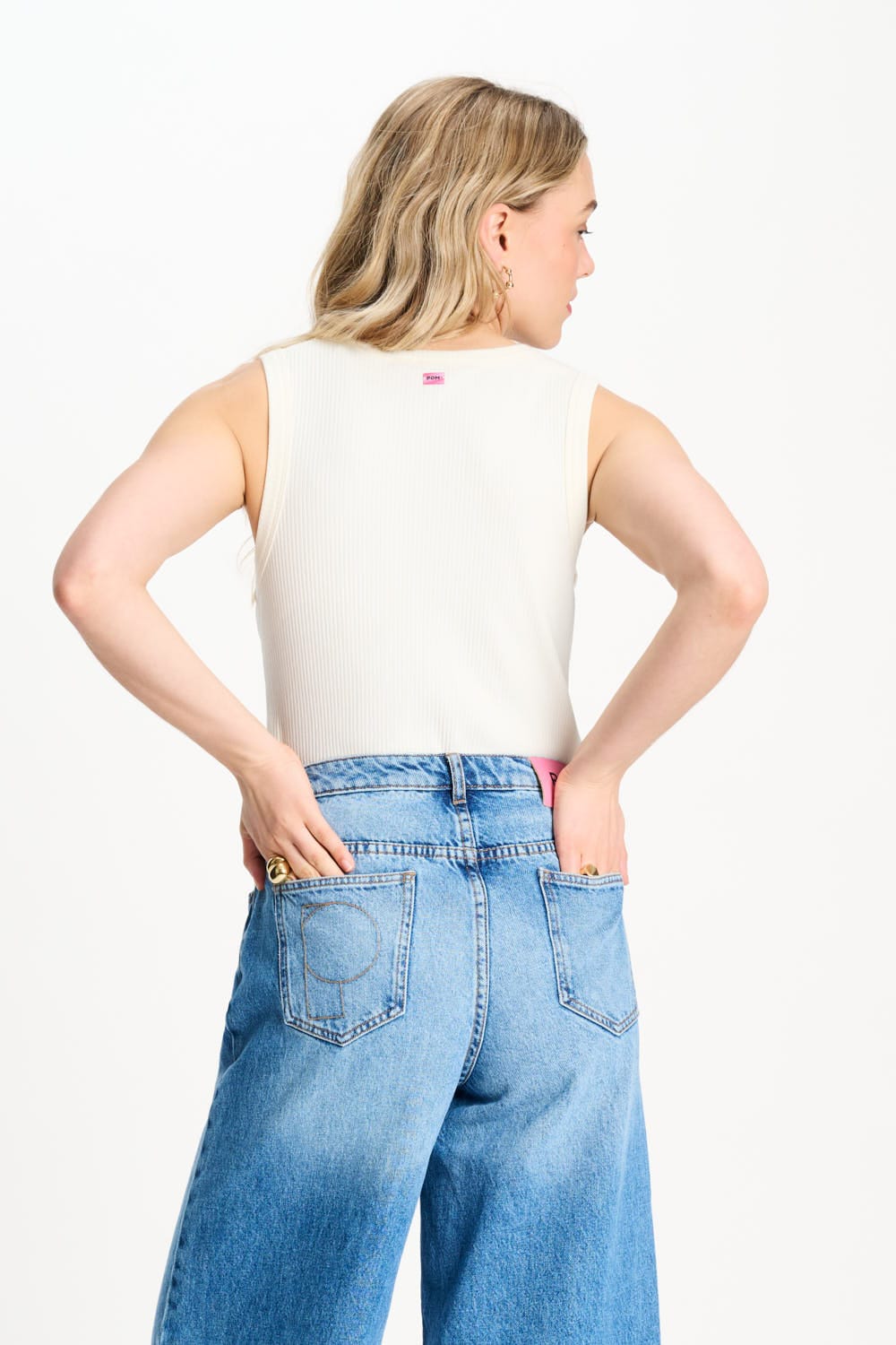 Pasvorm: Deze tanktop heeft een aansluitende fit. Het model is 170 cm lang en draagt maat 36.