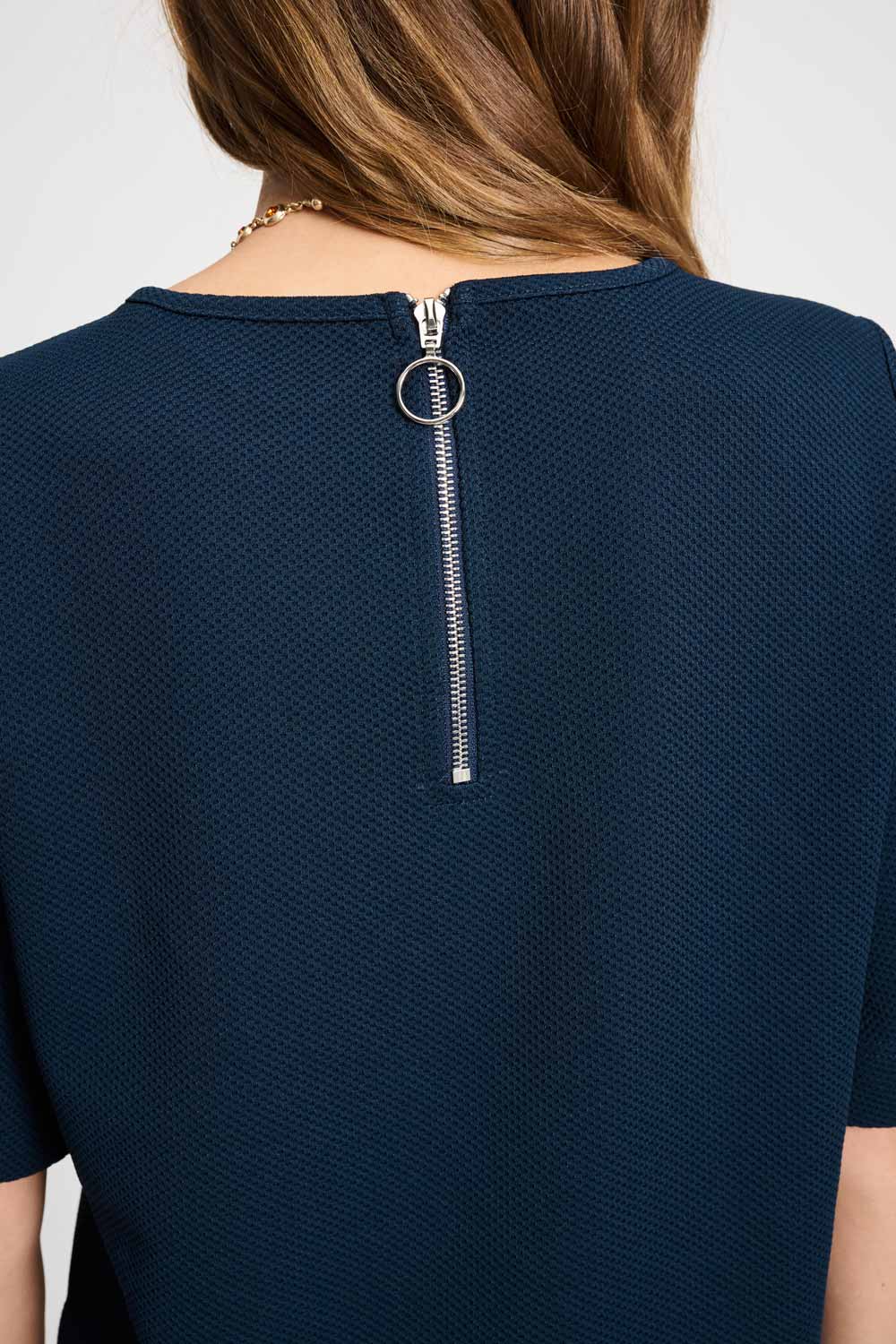 • Blauwe top in licht gestructureerde stof